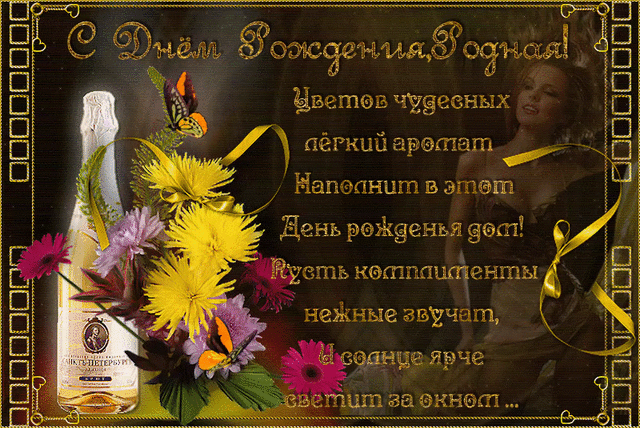 «С днем рождения, родная доченька!» открытка со стихотворением