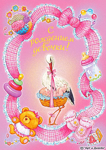 «С рождением девочки!» поздравительная открытка со стихом