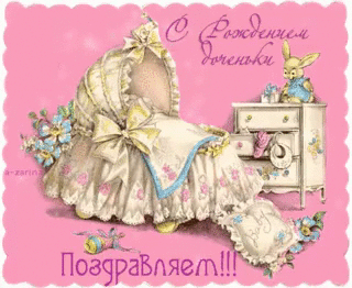 «С рождением доченьки!» анимированная открытка