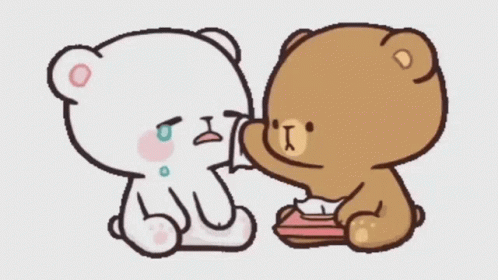 Milk and Mocha Bear cartoon: Brown bear comforts crying white bear with a tissue, with Tagalog text overlay.