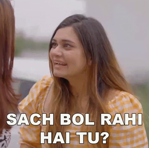 Nancy asks 'Sach Bol Rahi Hai Tu?' (Are you telling the truth?) with a questioning expression.