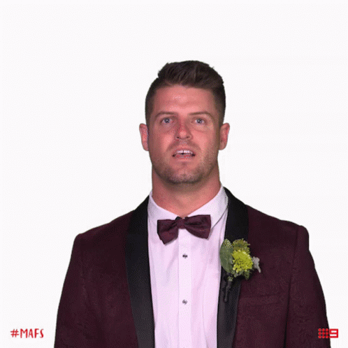 David from Married At First Sight looks visibly sad and emotional in his tuxedo.