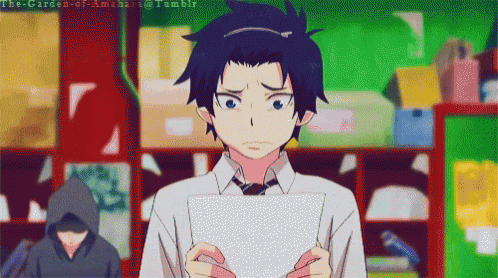 Rin Okumura from Blue Exorcist looks sad while holding a piece of paper.