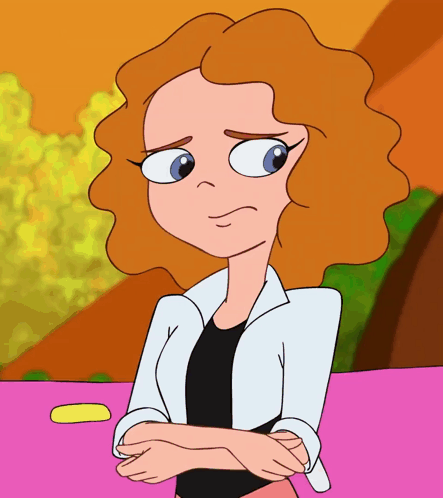 Melissa Chase from Milo Murphy's Law looks sad and thoughtful, arms crossed, contemplating a decision.