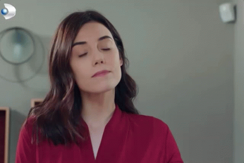 Cansu Dere as Asya in Sadakatsiz, looking thoughtful with the Turkish word 'Peki' (Okay) on screen.