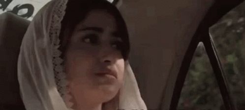 Sajal Aly, from Dhoop Ki Deewar, looking emotional while sitting in the back seat of a car, wearing a white veil.