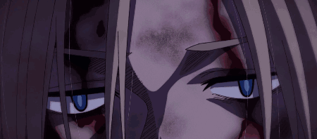 a close up of a person with red eyes