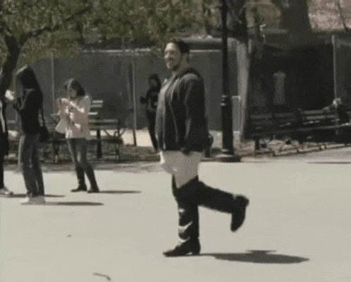 Sal Vulcano from Impractical Jokers takes an iconic walk in comically oversized boots in a park.