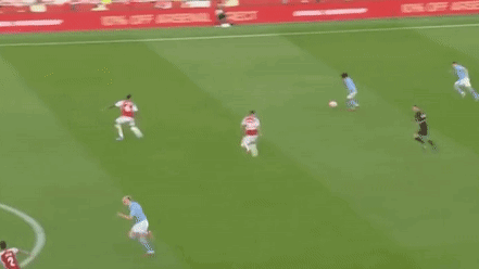 William Saliba's strong defensive play against Erling Haaland in a football match.