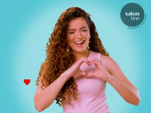 Daiane Fercine, representing Salon Line Todecacho, smiles and makes a heart shape with her hands.