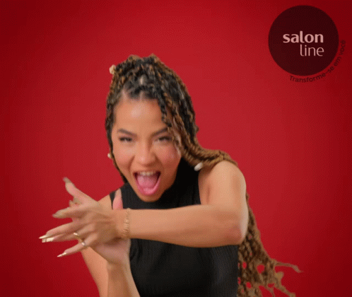Carolmamprin enthusiastically cheers for Salon Line, showcasing her braided hair and vibrant energy.