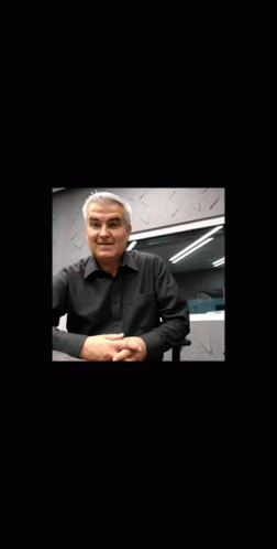 A man with grey hair and a black shirt smiles and speaks to the camera.