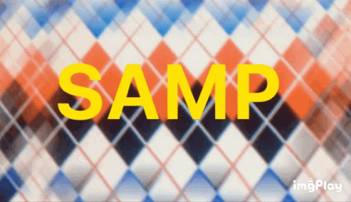 The word "SAMP" in yellow letters displayed on a colorful checkered background, associated with Sampdoria.