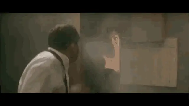 A woman wearing headphones reacts with surprise, then breaks into a wide smile and laughter.