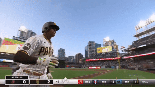 Juan Soto celebrates with his San Diego Padres teammates after a play in a baseball game.