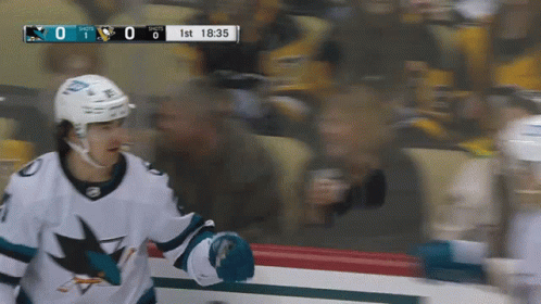 Michael Eyssimont celebrates after scoring a goal for the San Jose Sharks during a hockey game.