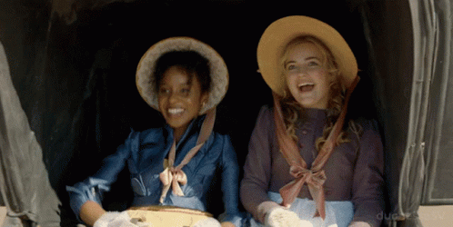 Allison Heywood and Georgiana Lambe share a joyful moment in a carriage during Sanditon Season 2.