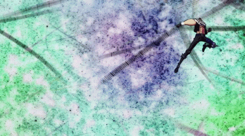 a man is flying through the air with a balloon