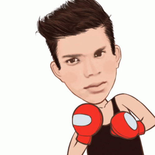 Santosh Dawar depicted as a boxer, wearing red gloves and a black tank top, ready for a fight.