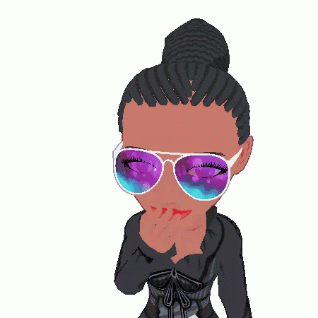 Cartoon character Saquinon Lehie (Saqui) blows a flying kiss, wearing sunglasses and a bun.