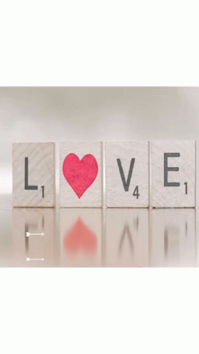 Saquinon Love spelled out with Scrabble-like tiles, featuring a heart instead of 'O'.