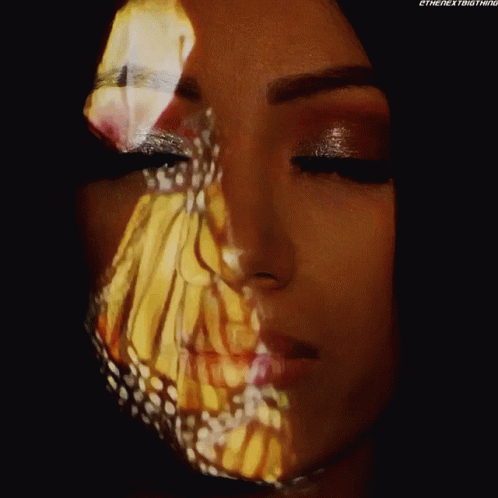 Sasha Banks with a beautiful butterfly projection on her face, creating a stunning visual effect.