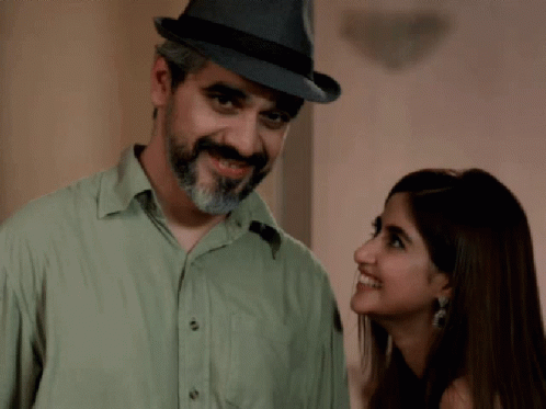 Sajal Aly and Omair Rana share a warm moment, smiling at each other and the camera.
