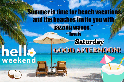 Enjoy a beautiful Saturday afternoon at the beach with jazzing waves, palm trees, and refreshing drinks.