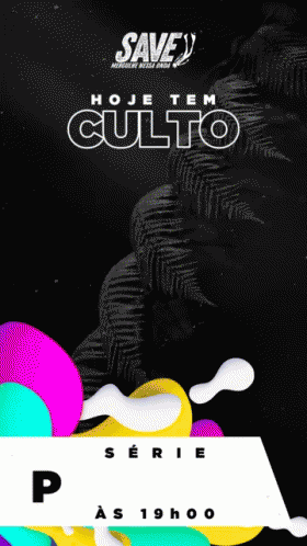 Dynamic animated poster for 'Save Culto' event, announcing the 'Princípios' series happening today at 7 PM.