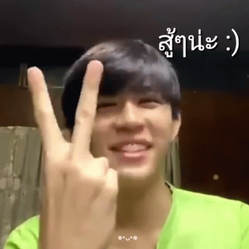 Young man, Save G, in a green shirt, smiles and gives a peace sign, encouraging with 'Keep fighting!'