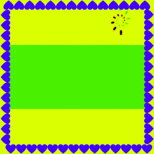 Arabic text 'Glory be to Allah and praise be to Him' on a vibrant yellow and green background with a blue heart border.