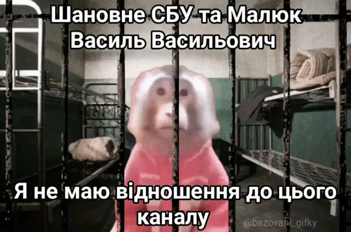 A monkey in a jail cell disclaims association with a channel, addressing the SBU and Vasyl Vasyliovych Maliuk.