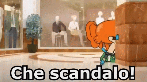 Gumball and Darwin dramatically react to a scandal, exclaiming 'What a scandal!' in an exaggerated manner.