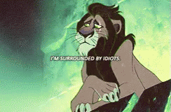 Scar from Disney's The Lion King looks exasperated, declaring 'I'm surrounded by idiots.'