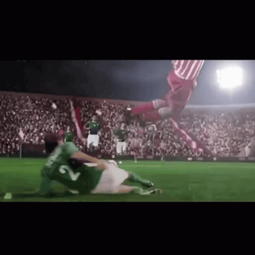 Soccer player Schiavi Rolando in a green jersey is tackled by an opponent during an intense match.