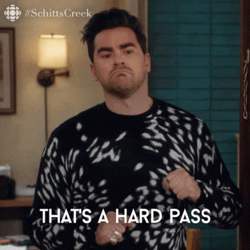 David Rose from Schitt's Creek emphatically states 'That's a hard pass' while wearing a patterned sweater.