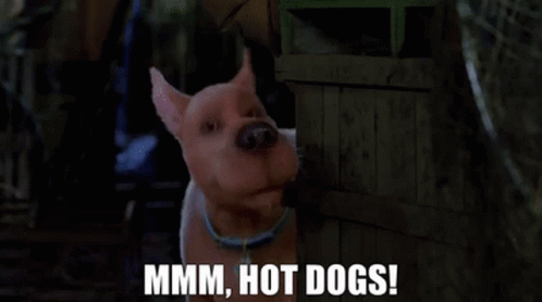 Scooby Doo expresses his love for hot dogs with a classic "Mmm, Hot Dogs!" line.
