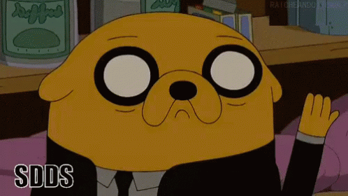 Jake the Dog from Adventure Time is shown crying and looking sad, expressing 'sdds' (saudades).