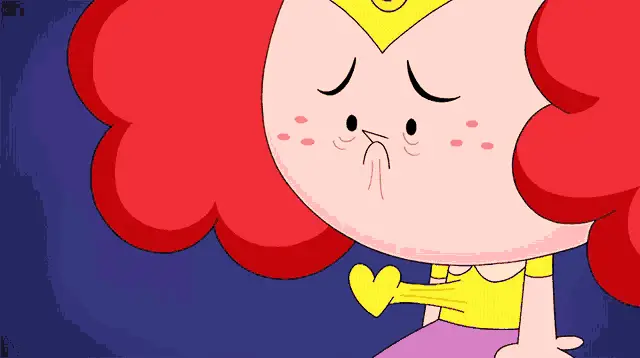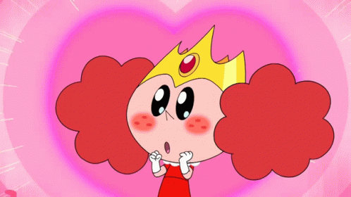 A blushing princess from Powerpuff Girls is overjoyed, thinking someone remembers her, surrounded by hearts.
