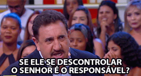Brazilian TV host Ratinho asks a pointed question to someone off-screen: 'If he gets out of control, are you responsible?'