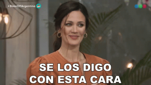 Paula Chaves smiles brightly, gesturing as the caption 'I tell you with this face' appears on screen.
