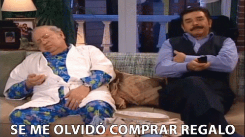Eduardo Manzano asleep on couch, Jorge Ortiz De Pinedo awake, with caption 'I forgot to buy a present'.