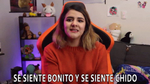 Mafer Rocha expresses a positive feeling, saying "It feels nice and it feels cool" while sitting in an orange gaming chair.