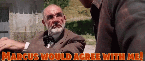 Sean Connery as Henry Jones Sr. in Indiana Jones, discussing Marcus, with the quote 'Marcus would agree with me'.