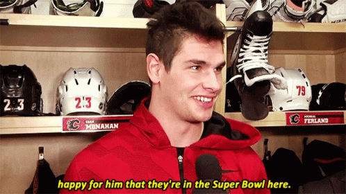 Sean Monahan of the Calgary Flames discusses his happiness for someone in the Super Bowl.