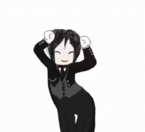 Animated character Sebby performs a cheerful dance, moving rhythmically with hands near head.