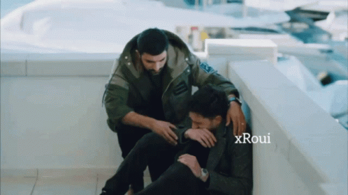 Sancar Efeoglu comforts Gediz during an emotional moment in the Turkish drama Sefirin Kizi.
