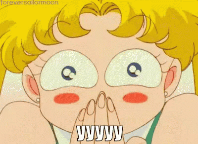 Sailor Moon reacts with wide eyes and hands covering her mouth, expressing extreme surprise and shock.
