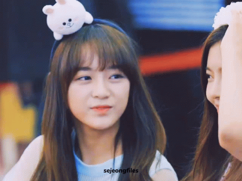Kim Sejeong looking surprised while wearing a cute cloud headband, captured by sejeongfiles.