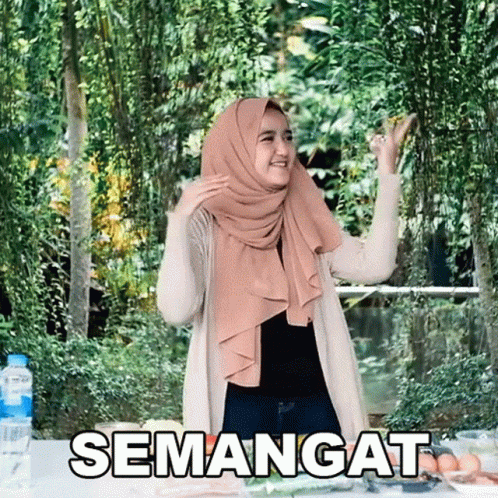 Wirda Mansur radiates enthusiasm with the word 'SEMANGAT' displayed, inspiring viewers.